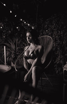 Retrato profesional de modelo de webcam cali en sesión de fotos.